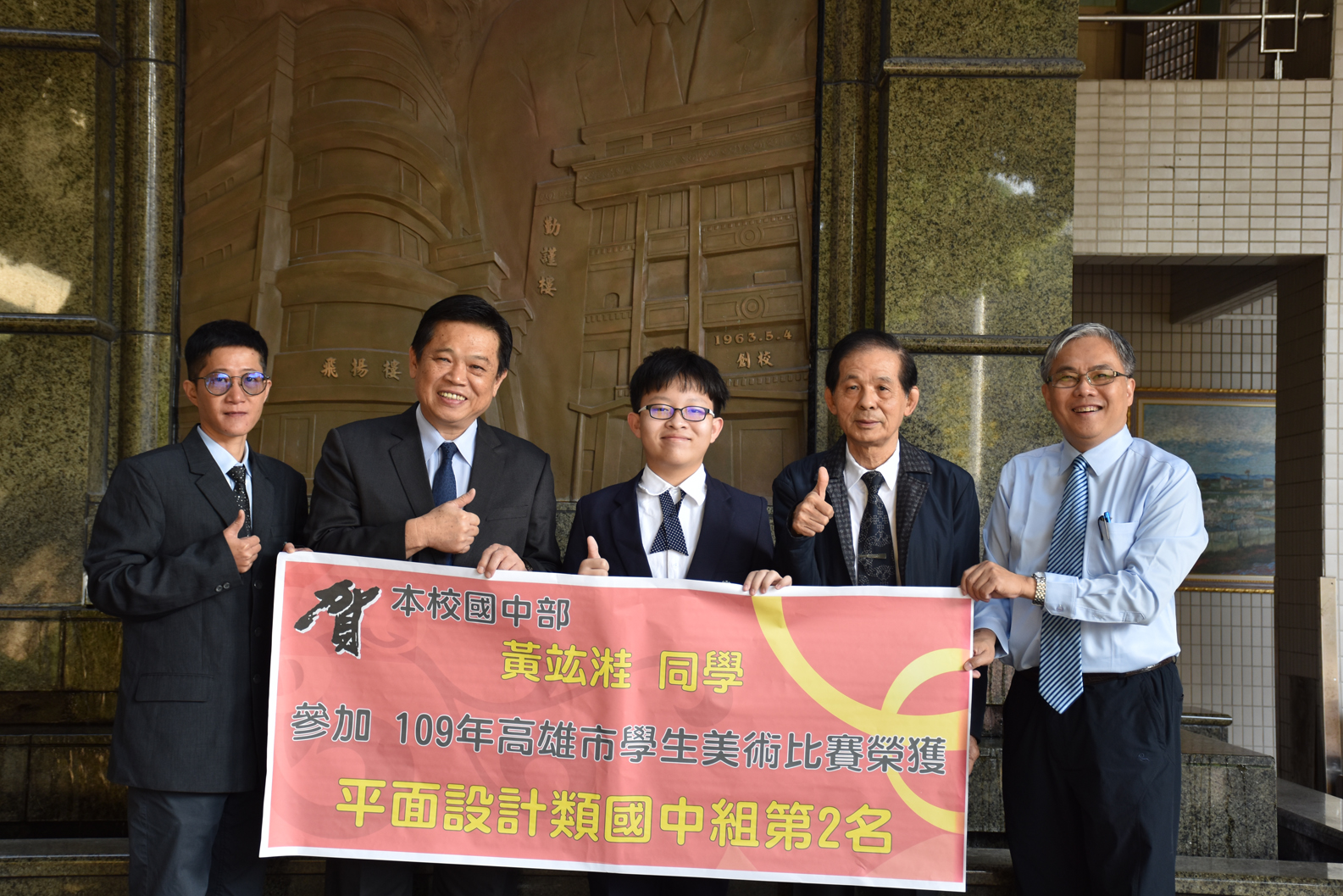 陳宜庭、王瑋涵、邱思筠、張品愛、蘇泓叡同學參加第14屆聯合盃作文大賽,榮獲八年級第五名及佳作將代表高雄市參加全國比賽