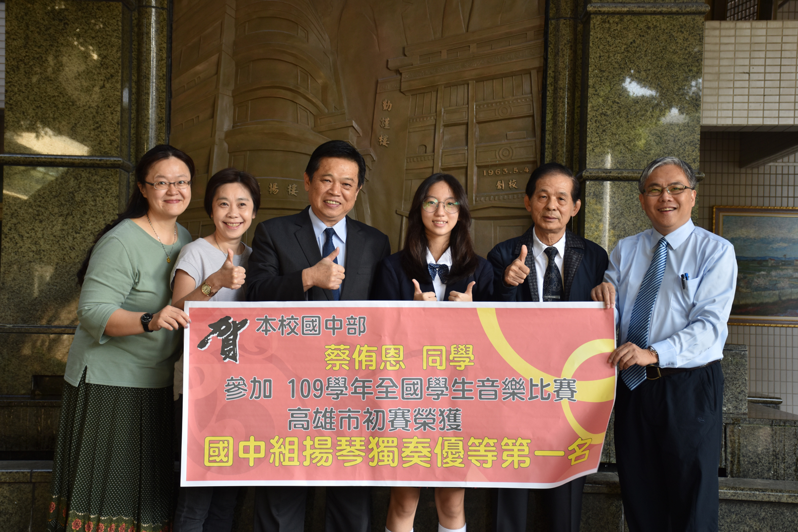蔡侑恩同學參加109學年全國學生音樂比賽高雄市初賽榮獲國中組揚琴獨奏優等第一名(代表高雄市參加全國賽)