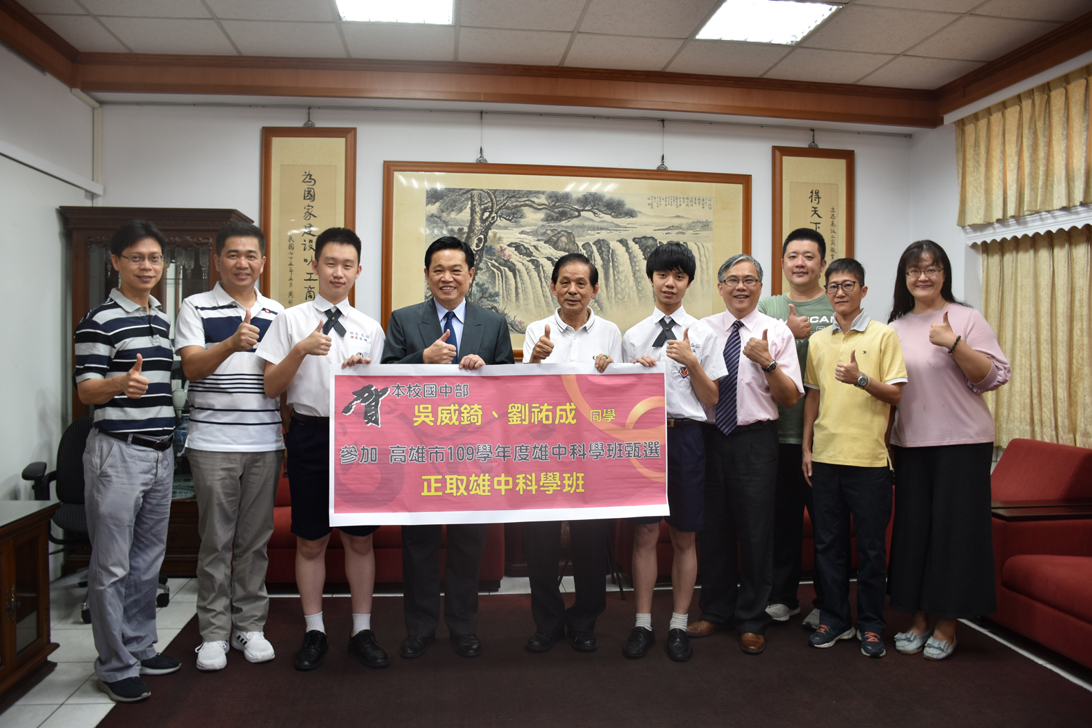 吳威錡、劉祐成同學參加高雄市109學年度雄中科學班甄選正取雄中科學班