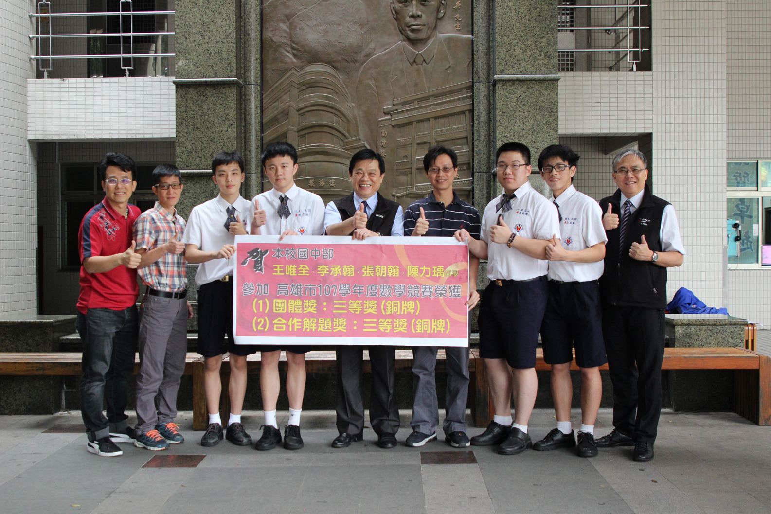 107學年度國中數學領域競賽榮獲團體獎:三等獎(銅牌)、合作解題獎:三等獎(銅牌)
