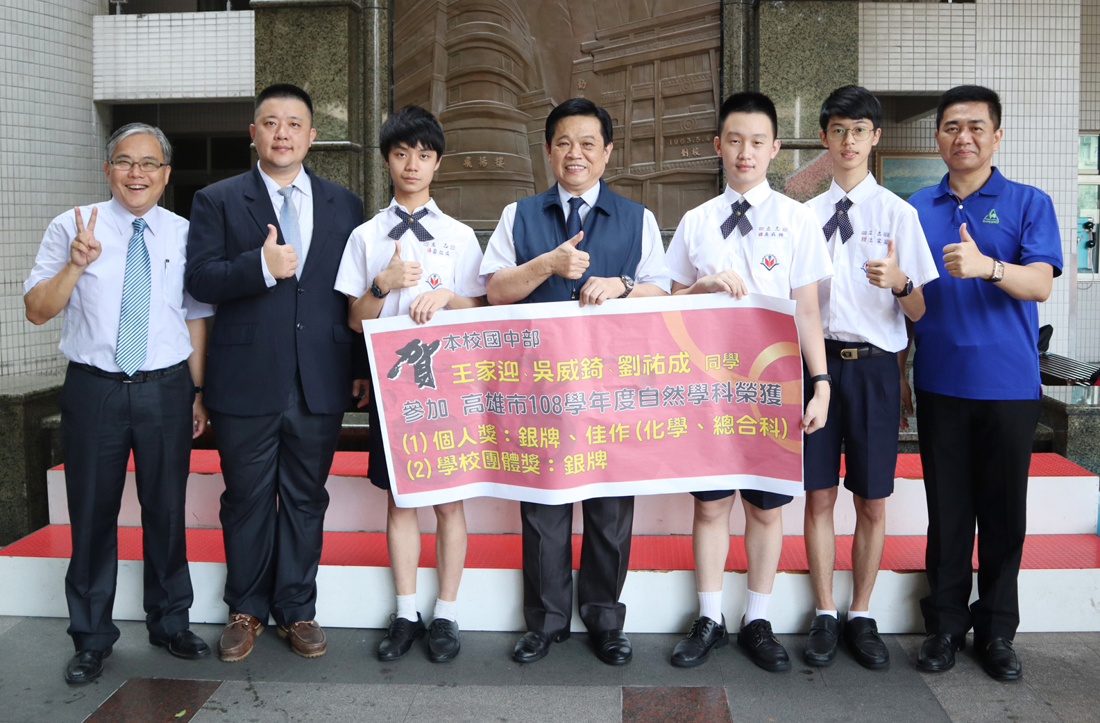 王家迎、吳威錡、劉祐成同學參加高雄市108學年度自然學科榮獲個人獎:銀牌、佳作(化學、總合科)、學校團體獎:銀牌